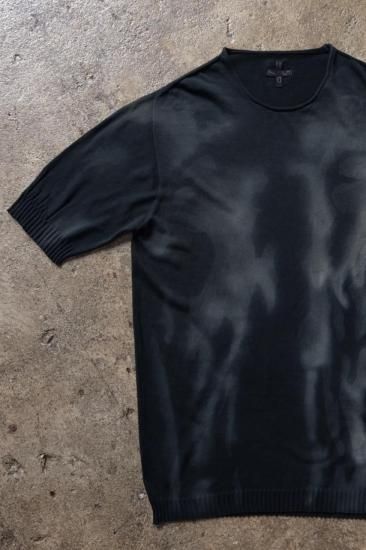 MD12223. Hand Made Spray Color + Hand Made Spray Spider Short Sleeve Knit. Black(Hand Dyed). MD75.